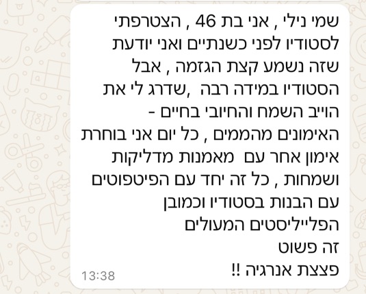 ואני כאן להגיד לכם שאתם לא לבד! כמו רבים אחרים, גם אני חיפשתי את המקום הנכון, שבו אני לא סתם עוד מתאמנת. סטודיו שהמאמנות והמאמנים יודעים את השם שלי, שחשובה להם ההתקדמות וההצלחה האישית שלי.